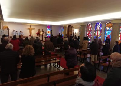 Desde las 10.30, en el templo de la Parroquia San Juan Bosco, la Comunidad Salesiana agradeció a Dios estos años de labor y entrega en la ciudad, y a la Iglesia y sociedad su acogida y apoyo. La mañana finalizó con la misa de la Solemnidad de la Inmaculada presidida por Ángel Asurmendi, provincial de la Inspectoría Salesiana María Auxiliadora, que acompañó a la Familia Salesiana junto a Jordi Lleixà, delegado de Pastoral Juvenil.