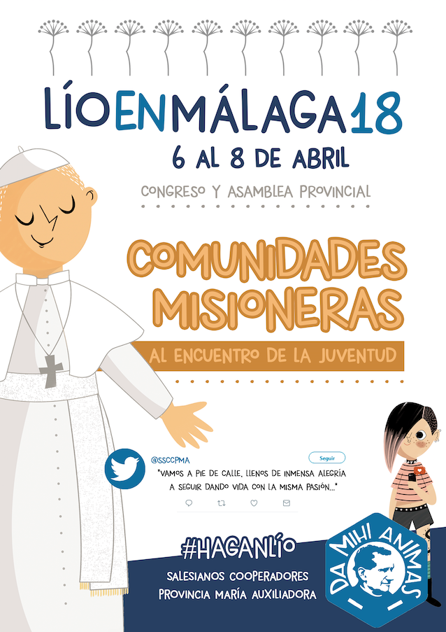 Los Salesianos Cooperadores de la Provincia María Auxiliadora, que agrupa los centros locales de Andalucía, Extremadura y Canarias, se han convocado en la Casa Diocesana de Espiritualidad (Seminario) de Málaga para celebrar su Congreso y Asamblea 2018 a la cual acudirán más de 300 personas durante los próximos 6, 7 y 8 de abril.