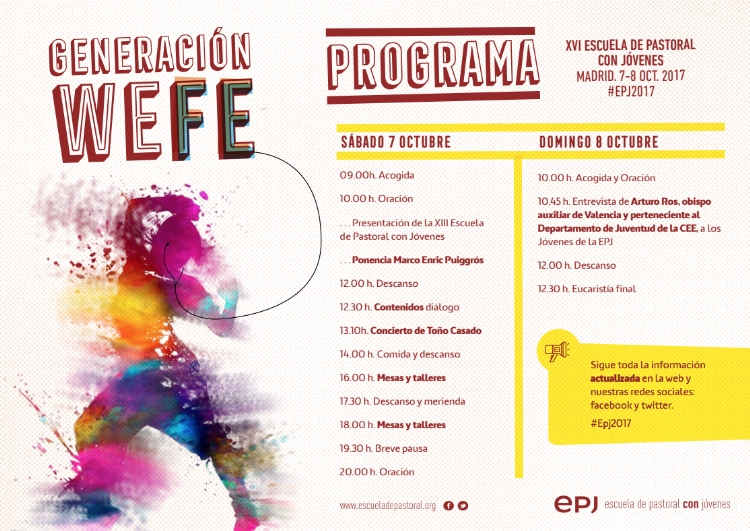La familia salesiana estará representada en la EPJ con treinta personas. Si estás interesado, descárgate el prógrama, habla con tu delegado de pastoral juvenil o con tu coordinadora y APÚNTATE AQUÍ.