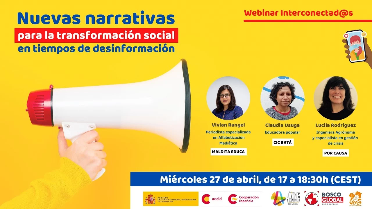 El miércoles 27 de abril, tres profesionales del tercer sector aportaron enriquecedoras reflexiones desde diferentes miradas y disciplinas en torno a cómo los discursos del odio nos afectan en el día a día. Con el objetivo de fortalecer las competencias digitales en el sector educativo, el webinar Interconectad@s “Nuevas narrativas para la transformación social en tiempos de desinformación”, abordó cómo funciona la desinformación y su vinculación con las narrativas de discursos del odio. En este sentido, las estrategias y herramientas son esenciales a la hora de ampliar el pensamiento crítico desde las narrativas positivas, las narrativas del amor.