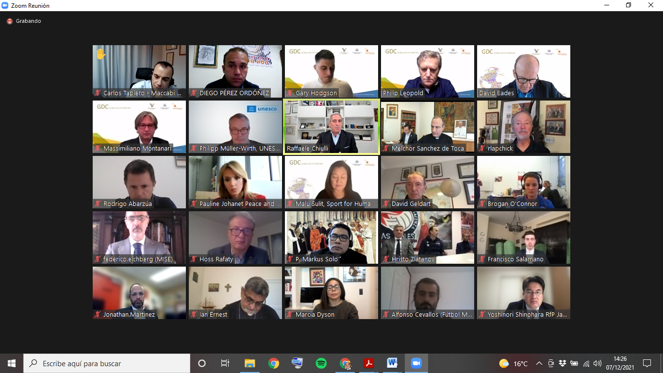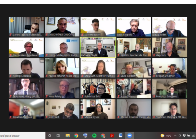 La primera reunión on line, que sirvió como lluvia de ideas, contó con las palabras de bienvenida y apertura de Mons. Melchor Sánchez de Toca, subsecretario Pontificio Vaticano en el Consejo de Cultura de la Santa Sede, David Eades, presidente de Sport for Humanity, Massimiliano Montanari, director ejecutivo de Save the Dream y Michael Hershman, director ejecutivo de The Soloviev Group.