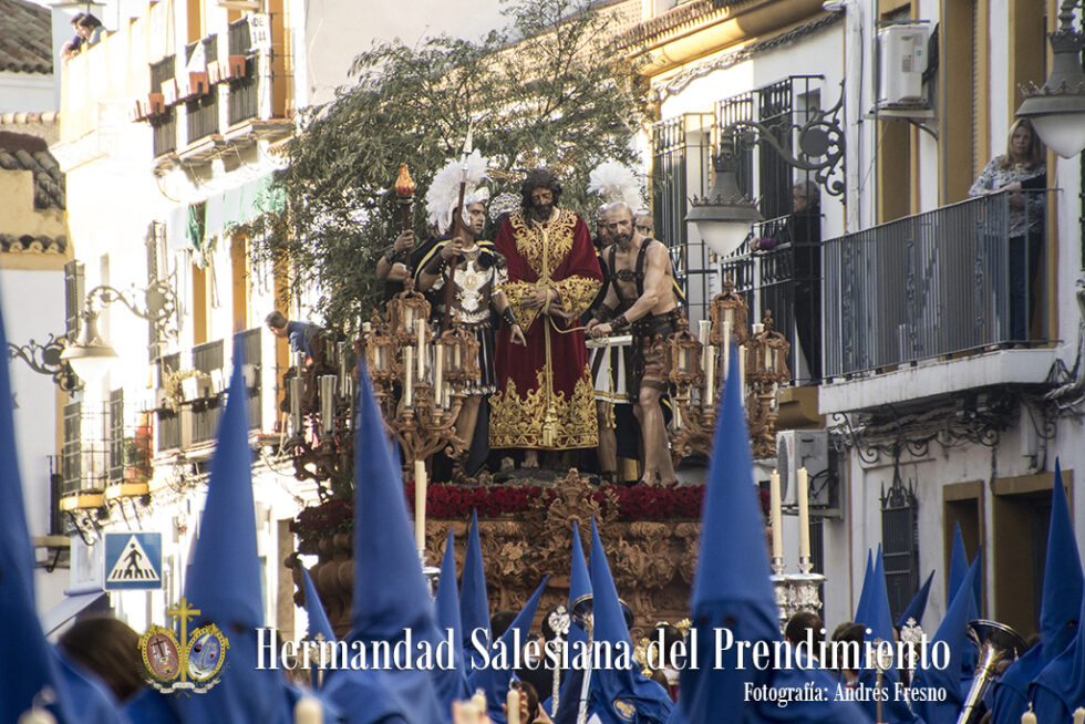 La Germandat del Prendimiento es caracteritza per la seva joventut i jovialitat, seguint el carisma de Don Bosco. Es tracta d’una de les germandats cordoveses més esperades cada Setmana Santa. Tot i que jove en la seva fundació i història, sempre ha estat integrada a la Família Salesiana, realitzant la seva manifestació pública de fe des d’una motllura i estètica confrare, però amb la referència dels ensenyaments de Don Bosco i sota l’empara de Maria Auxiliadora.