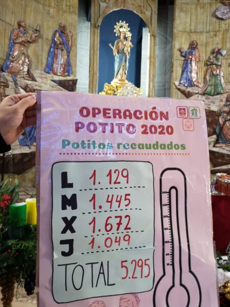 Al finalizar el día, en nuestra casa salesiana, realizamos entre todos el recuento de los potitos. Este momento es muy bonito, poder ver la cara de felicidad de los voluntarios al ver la gran cantidad de potitos que han recaudado.