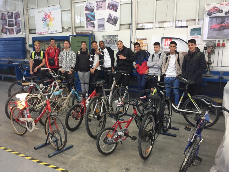 “El proyecto surgió hace ya 11 años protagonizado por los alumnos de Formación Profesional Básica. Consiste en la rehabilitación y/o reparación de bicicletas por parte de los alumnos de primer curso de FP Básica de Mantenimiento de Vehículos para donarlas posteriormente a distintas ONG, entidades o incluso particulares. Gran parte de estas bicicletas son entregadas a niños y niñas de la ciudad o de otros países como Guinea Bissau, Uganda o Senegal.