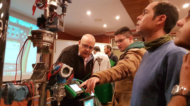 En el seminario se pudo ver el proceso completo de calibración de varios instrumentos de medida de presión y temperatura utilizando un gran despliegue de equipos de calibración de la firma finlandesa Beamex, desde calibradores de campo, generadores de patrón de presión, bombas de presión para calibración, horno de calibración de temperatura, sensores, así como del software CMX, software de ayuda en la planificación, la gestión, el análisis y la documentación de todo el trabajo y los recursos de calibración.