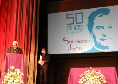 La Obra Salesiana clausuró los actos de su cincuentenario en Jaén, con la asistencia del alcalde, Julio Millán, y de la concejala de Políticas Sociales, Ángeles Díaz, D. Amadeo Rodríguez, obispo de la Diócesis, y Fernando Miranda, vicario de la Inspectoría María Auxiliadora. Fue en el Teatro Darymelia y sirvió para reconocer a las instituciones, entidades y colectivos que en este medio siglo han colaborado con los Salesianos en Jaén: el Ayuntamiento, la Diputación, la Universidad, Hermanos Maristas, PASSO, el CEIP Santo Domingo o la Diócesis de Jaén.