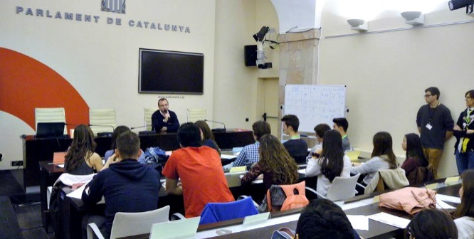 Estudiantes de Bachillerato de Salesianos de Sarrià participaron recientemente en un taller en el Parlamento de Cataluña para aprender el funcionamiento de sus comisiones parlamentarias. Los estudiantes pudieron incluso preguntar a un diputado.