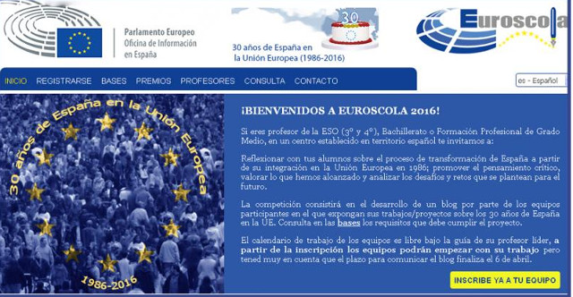 EuroScola es un concurso que convoca la Oficina de Información del Parlamento Europeo en España, en colaboración con la Representación en España de la Comisión Europea y la Secretaría de Estado para la Unión Europea (ministerio de Asuntos Exteriores y Cooperación). Esta es la XXII edición del Concurso Euroscola dedicado a los 30 años de España en la Unión Europea (1986-2016).