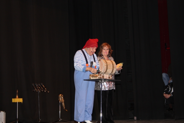 Al principio del acto se leyó una carta emotiva de la voluntaria oscense Teresa López que desde hace 11 años trabaja en las misiones salesianas de Etiopía. Los magos Churches y Plumetti salieron a escena con su desenfado y provocación mágica haciendo que el público comenzara a entrar en calor para ver a la compañía de payasos.