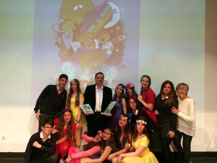 Joaquín es un escritor más experimentado, antiguo alumno de la casa, que hizo un hueco en su agenda para acudir a presentar su último libro “Cuentos Encadenados”. Una hora en la que pudo leer algunos de ellos y donde los alumnos de la etapa de Secundaria colaboraron en la representación de los mismos en un acto en el que todas las etapas pudieron disfrutar en el teatro.