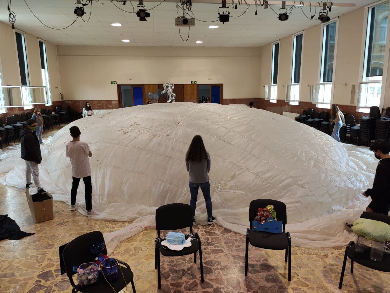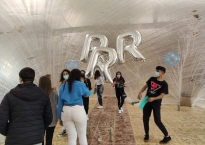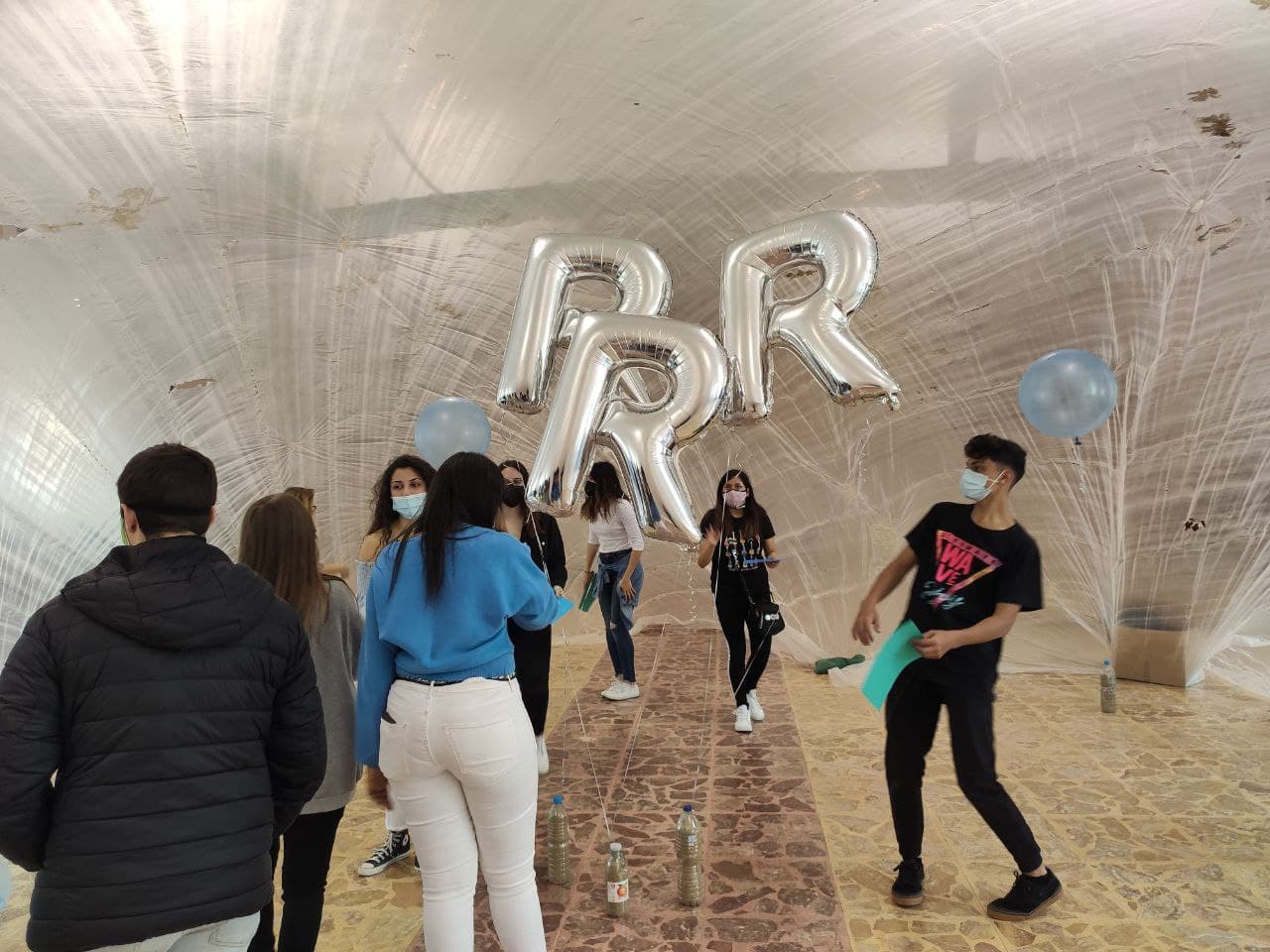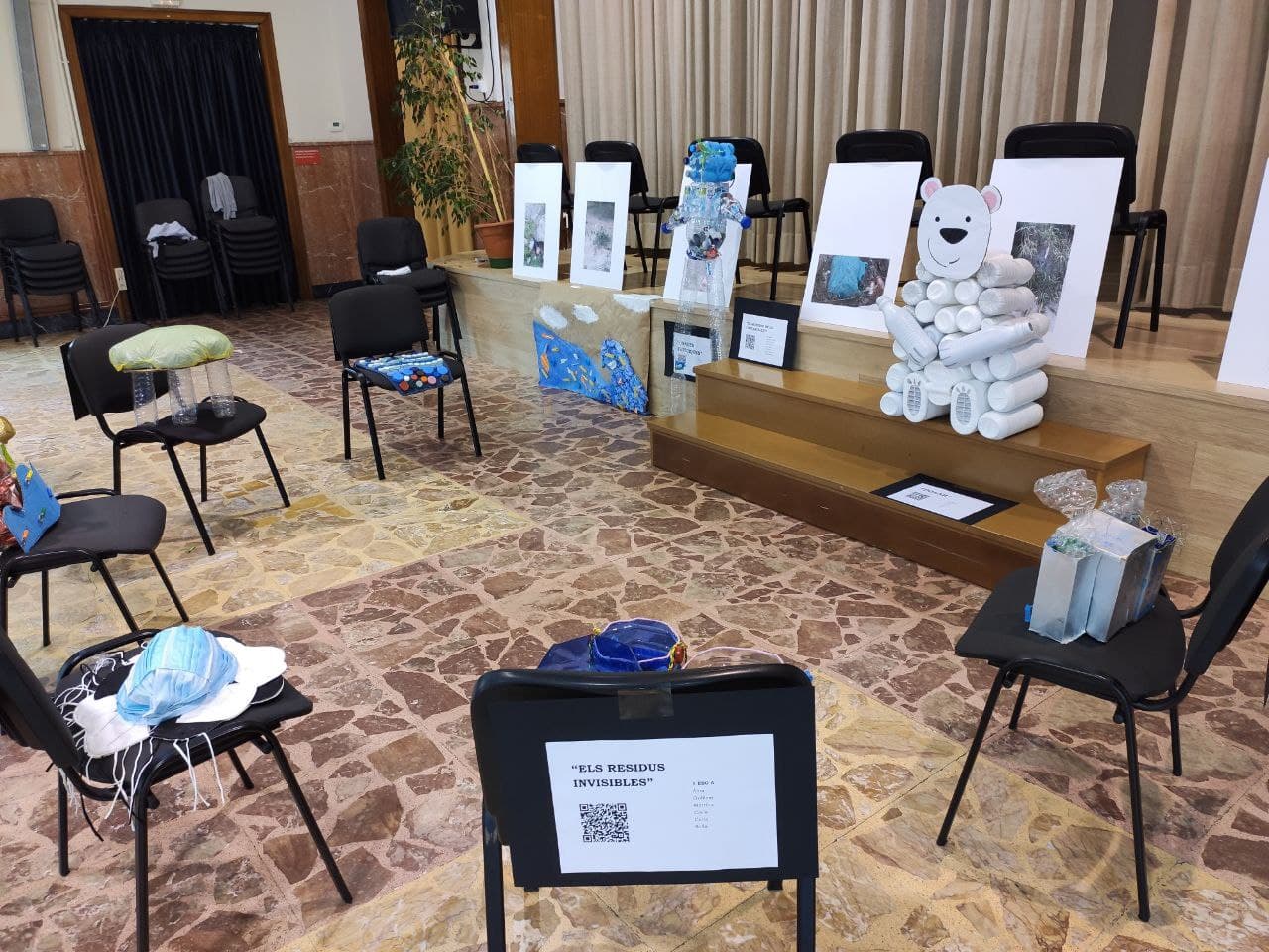 Los alumnos de secundaria, de forma voluntaria, han hecho diversas creaciones artísticas usando los desechos más habituales: botellas, latas, papel de plata, bastoncillos de las orejas,… Los alumnos han preparado una exposición que incorpora las creaciones artísticas, un recorrido fotográfico y una video-guía. Ésta ha ido acompañada de un elemento intruso, que complementa la creación de arte contemporáneo: medio globo aerostático situado en la sala de actos, que quiere invitar a reflexionar en torno a las tres R (Reducir, Reutilizar y Reciclar).