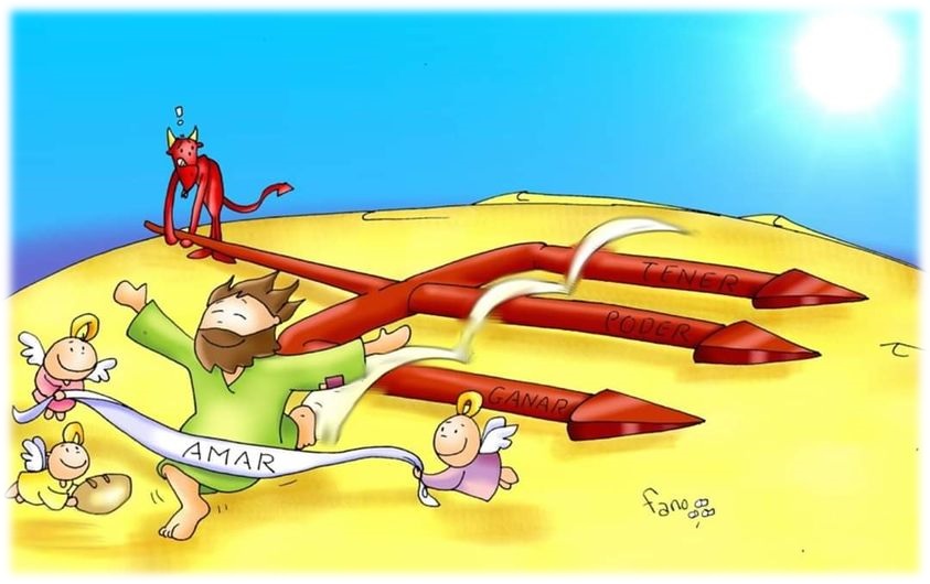 Nosotros en nuestro caminar diario vivimos momentos de desierto, momentos a los que nos lleva la vida sin nosotros haberlo programado, donde se nos pone a prueba. Quizás perdemos la paciencia y deseamos resultados rápidos y evidentes (piedras que se transforman en panes), o quizás aceptamos las dificultades bajo la condición de que nosotros quedemos como los grandes santos (los ángeles te levantaran con sus manos), o quizás nos dejamos llevar por el afán de poder y de que todo se haga como yo pienso (yo te daré todo esto).